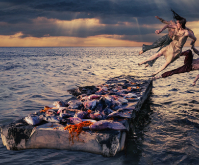 Salamander is a promenade, dance-theatre work which transforms a Northshore warehouse through light by Ben Hughes, sound, design and movement into a science, climate-fiction dream-like world. Es Devlin’s labyrinthian and kinetic sculptures live within a flooded landscape which is inhabited by characters desperate to make a change before it’s too late.