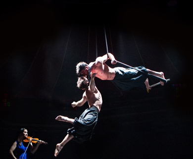 Three acrobats and one violinist perform live on a bare stage, drawing audiences into an astoundingly rich world of pure muscularity and strength, and serenaded with the haunting melodies of Bach and Vivaldi mixed with a contemporary playlist. Where beauty meets ferocity, expect to leave this performance feeling breathless.